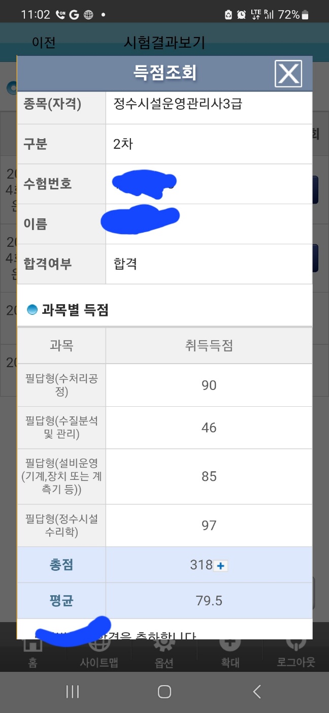 올해는 2024년이다. 이 자격증을 준비하는 다른 사람들에게 도움이 되기 위한 후기를 작성하려고 미루다가 1년이 지난 2024년이 돼서야 이 글을 작성하고 있다. 나는 작년 2023년에 정수시설운영관리사 34회차 정수시설운영관리사 3급을 1차, 2차 모두 한 번에 시험을 쳐서 합격했다. 내가 이 자격증을 취득한 이유는 큰 뜻이 없다. 자기 계발 목적 이유이기도 하고 이 자격증을 갖고 있으면 정수장에서 수도법에 의하여 시설규모에 따른 정수시설운영관리사를 의무로 고용해야 하기 때문이다. 정수장에서 일하고 있지는 않지만 향후 내 미래를 모르기 때문에 공부를 했고 운 좋게 한 번에 1,2차 시험 모두 고득점으로 합격했다.