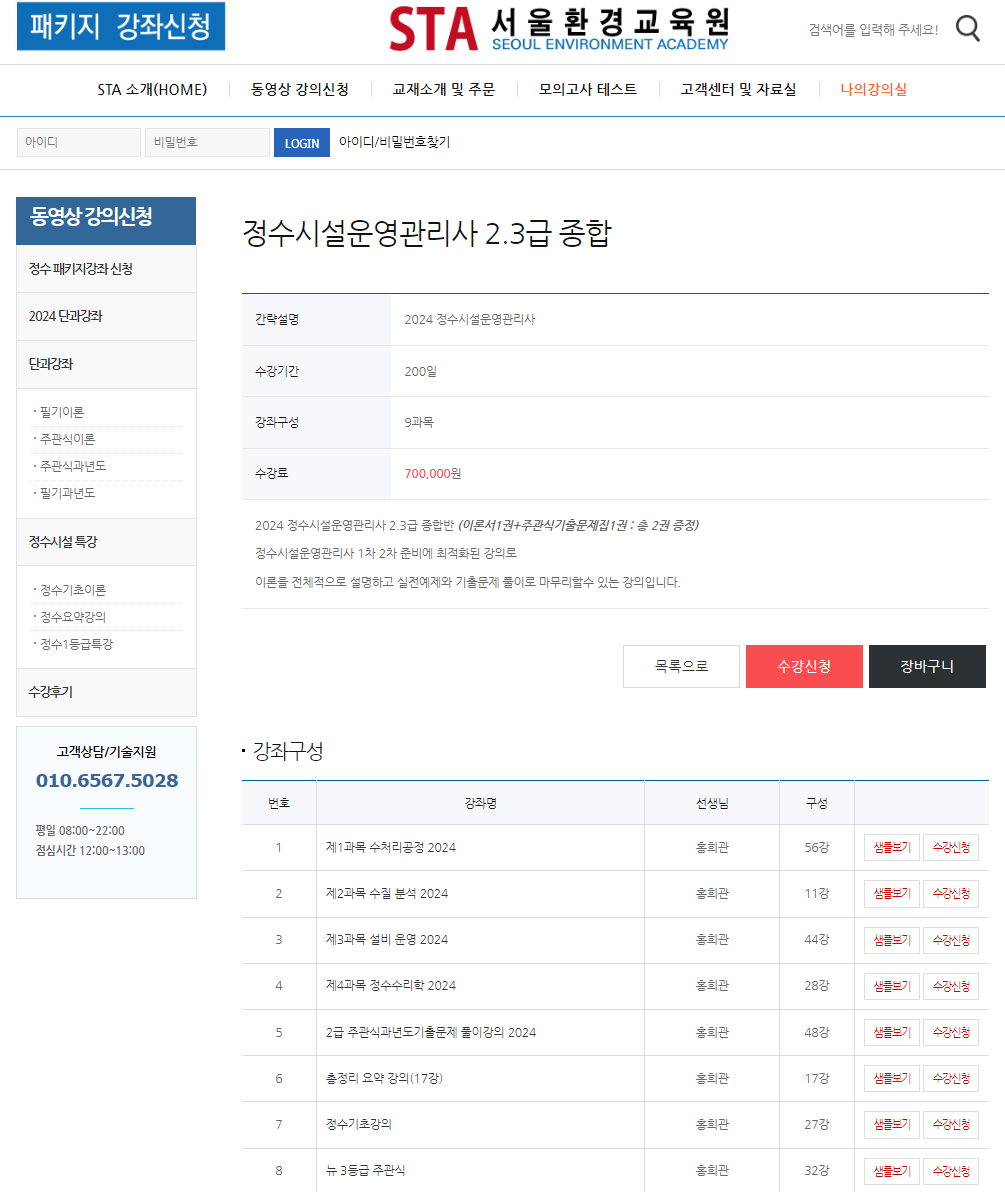 첫째, 서울환경교육원 STA에서 자기에게 맞는 강의를 구매한다.